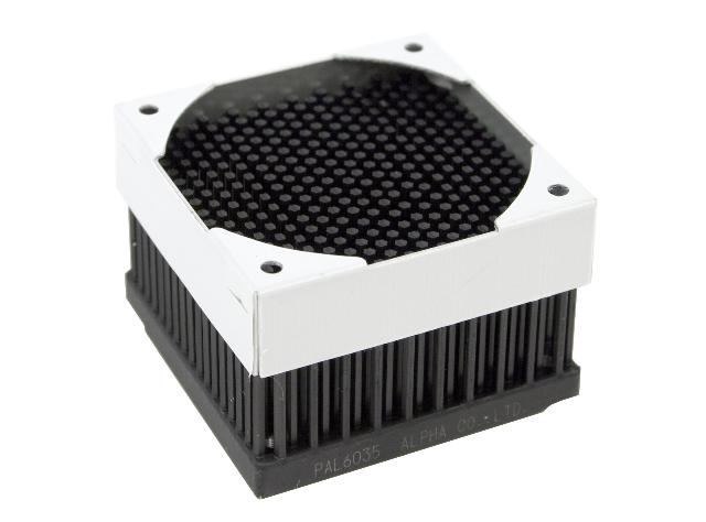 A Small Fan rests on top of the Heat Sink to blow the warm air away from the Processor and Heat Sink.